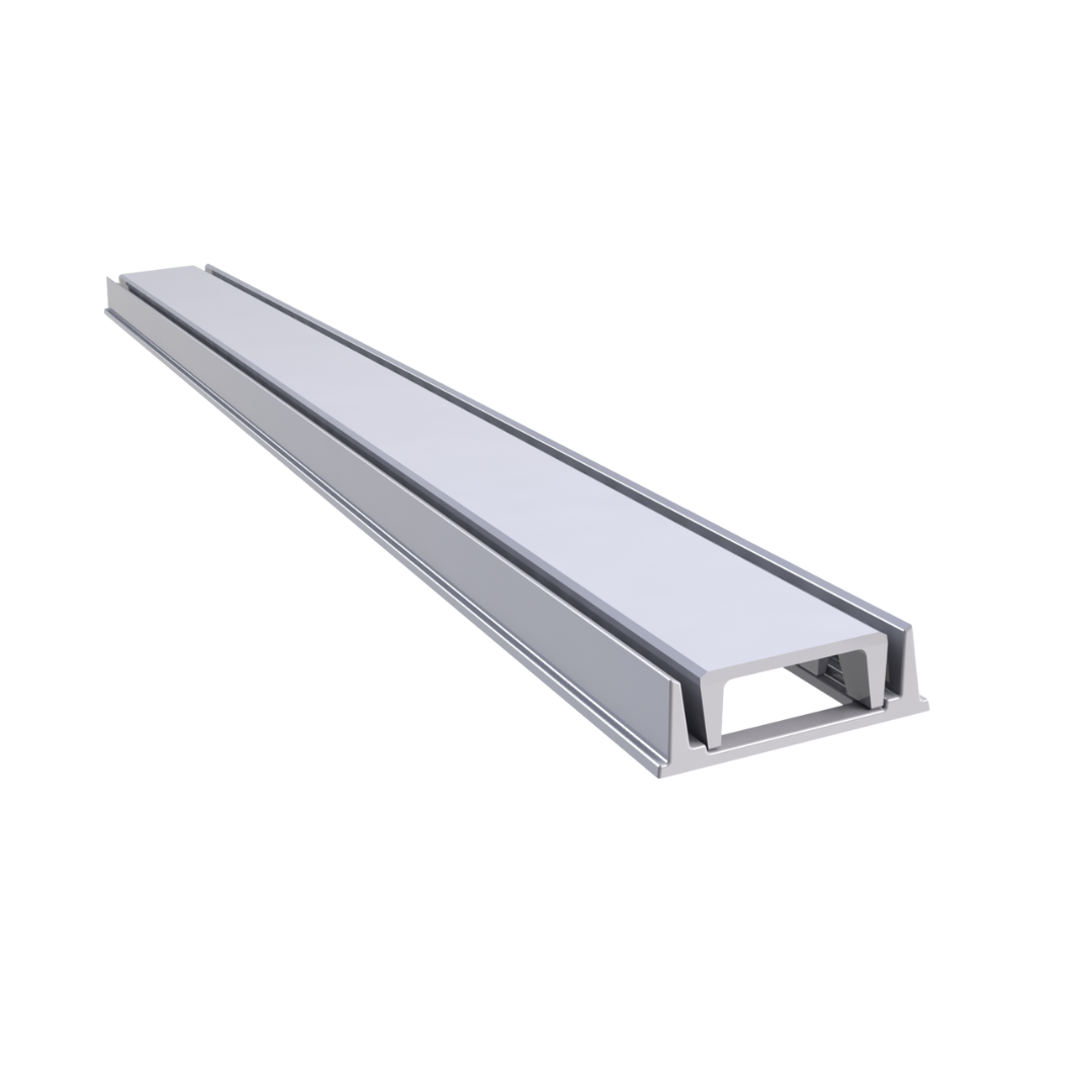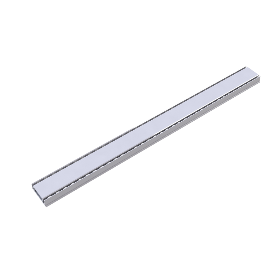 A solução minimalista para drenagem linear, com acabamento liso em alumínio e escoamento discreto.