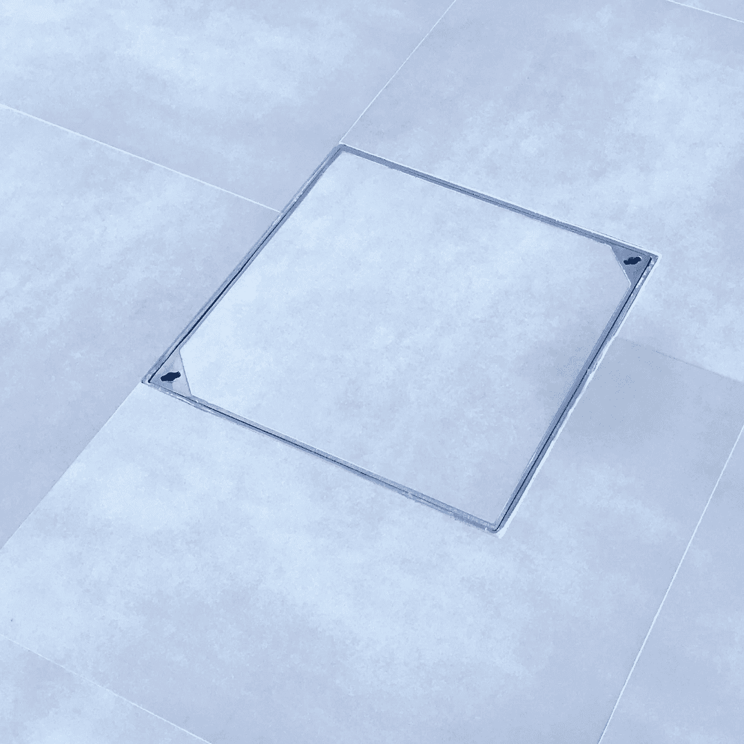 A solução "porta-piso" para um acabamento 100% invisível em caixas de inspeção simples.