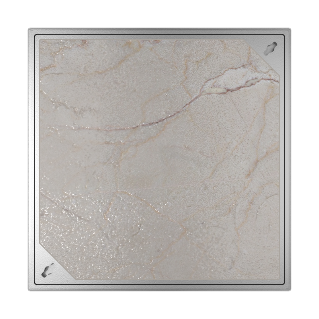 Este é o "porta-piso" clássico da GDA. Projetado para caixas de inspeção que não exigem vedação, este modelo permite que você aplique seu próprio porcelanato, pedra ou madeira na tampa, criando um acabamento limpo e totalmente integrado ao ambiente. É a escolha perfeita para quem preza pela estética e quer eliminar a poluição visual das tampas comuns.